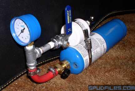 Yes, POS stands for what this launcher is! Piece of S H I T! This cannon was fought with for about a week and no luck showed. It seems that the Y chamber is not too good of an idea, it causes it to be very weak. Apparently mini's are very touchy when it comes to fuel and fuel mixtures. There was a special “Ghetto Propane Meter” built just for this gun. It started as a project to make a cheap but accurate meter. The only thing worth salvaging is the ignition screws and the barrel. Here are some pics: