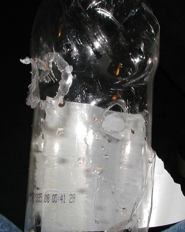 Yes, they were refilled full of water.MountainousDew wrote:My guess is yes... Execialy since their is orange liquid in the bottom of one, where a fragment of an orange jawbreaker dissolved in the water.boom_o_matic_2.0 wrote:did the bottle have anything in it? like water or anything?Technician1002 wrote:I was playing with some 3/4 inch jawbreakers today and got some interesting results. At 50 PSI they will go through a bottle of water, but at 8-90 PSI they fragment and don't exit anymore. Obligatory damage photos attached. The cannon is the Marshmallow Cannon with a 5 foot long 3/4 inch PVC barrel.