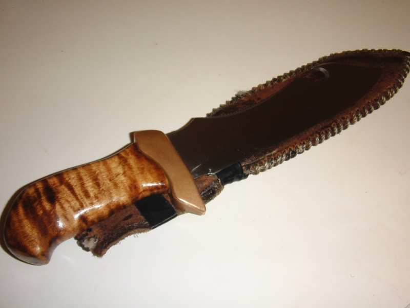 Made a knife today..1 piece of carbon steel, hardened and tempered. Fairly small, but holds nicely and is very sharp..Not sure what to do for a finish yet. Thinking of just running a buffing mop over it or blueing it..or just leaving it as it is, has a nice finish already..