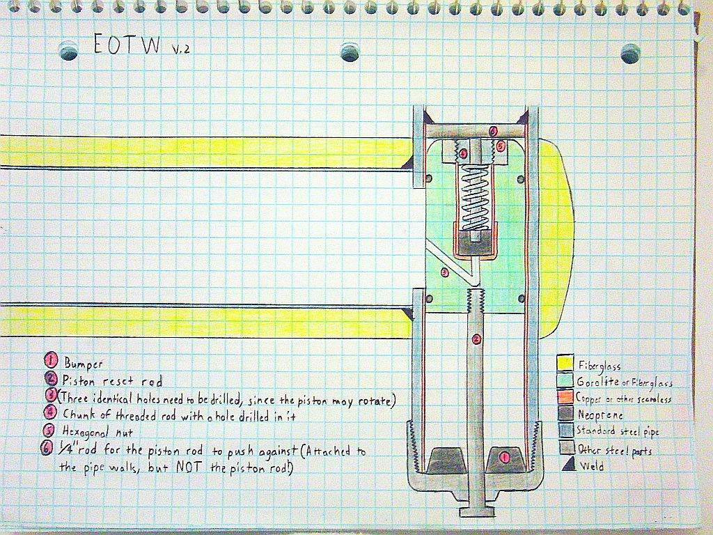 3. The piston's housing will require some modding if standard pipe fittings are used. Note that the diagram shows a largely custom housing that I intended to build eventually, but I'm fairly sure off-the-shelf fittings can be substituted.