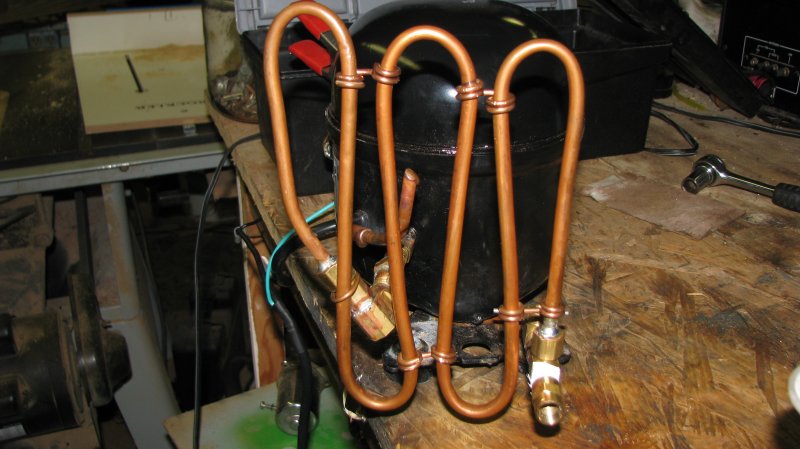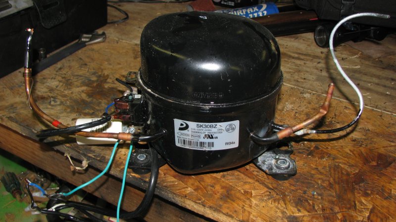 When I cut the refrigerant line hardly any gas came out since it mostly all leaked out already. It probably cost me about $35 to build.