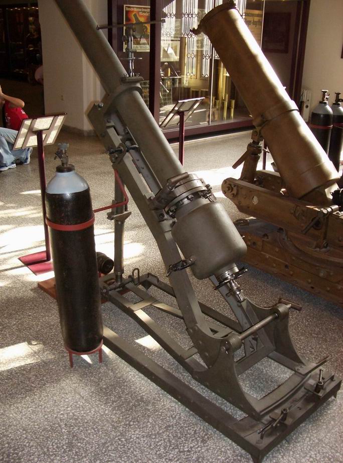 I think the design in the patent that is the subject of this thread is a more elegant solution though, as the projecile is balanced and isn't under any strain (aside from air pressure, but that is also true of the mortar designs) until it is pushed forward for firing.