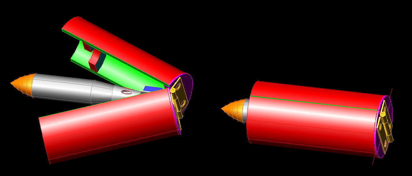 Here is a preliminary sabot with the Mini-Boy on separation.