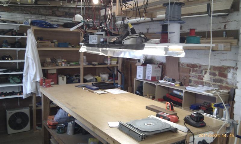 Anyhow after a weeks work I now have an elevated insulated floor (no more aches from standing on cold concrete at midnight) some decent storage areas that are going to take most of winter to sort and organise, a dedicated CNC/CAD workstation and best of all a great big island bench with great light and everything handy.