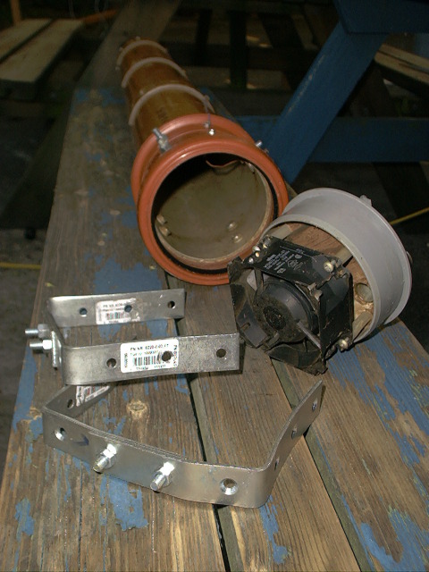 The chamber is 105 cm long, 110 mm in diameter (a long and narrow thin-walled pipe will withstand more pressure than a short and chubby one, for the same volume). The sparker has 4 gaps, evenly spaced. There is a PC fan at the breech end.