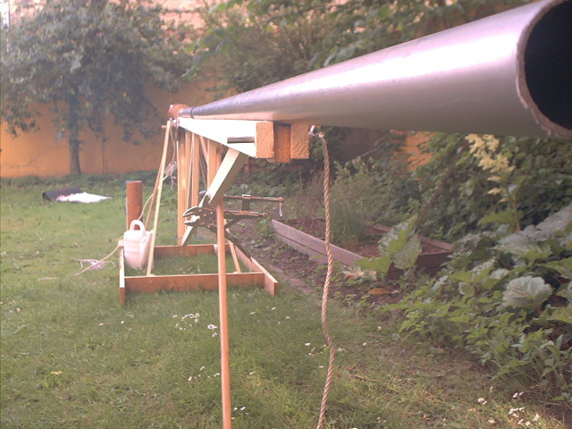 The barrel is 5 meters of 50mm OD pipe. I did some calculations, and found out that with the reletively low pressure of a combustion gun, a barrel of this length was needed.