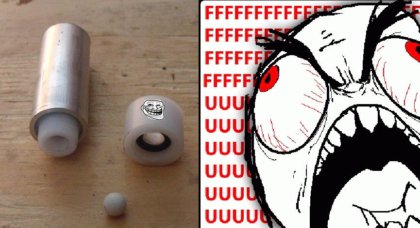 jackssmirkingrevenge wrote:Scaled it up and been fiddling with it all morning, but no luck, the detent is impossible to adjust! It's either too weak and pops the projectile as soon as you depressurise the fill rig, or too strong and doesn't pop even with a 25x mix burning behind it.