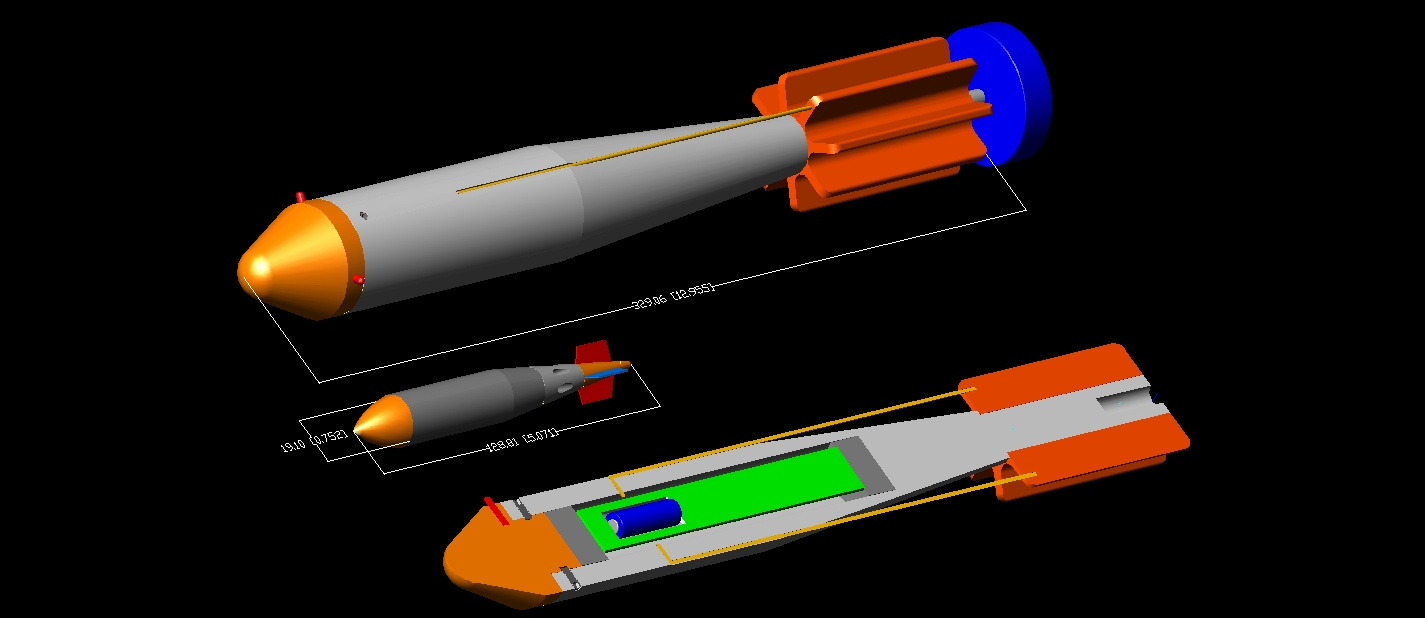 Not sure I understand the question. The idea behind the projectile is similar to what I've done in the past:is there a tecnical reason for the pleasure device not having the barrel diameter in the front ? will it not be unstable with just steering at the wery end ?