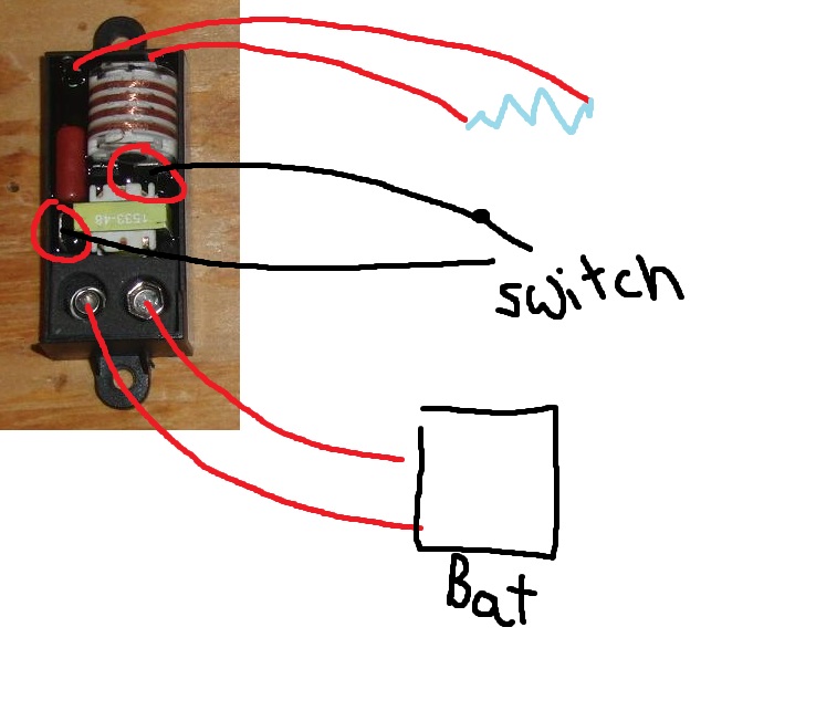 I'd just like to point out that the igniter won't work if you place a switch in the circuit with the battery. You can connect the battery directly and nothing will happen. The switch needs to be placed between the two spade connectors located in this picture, circled in red.