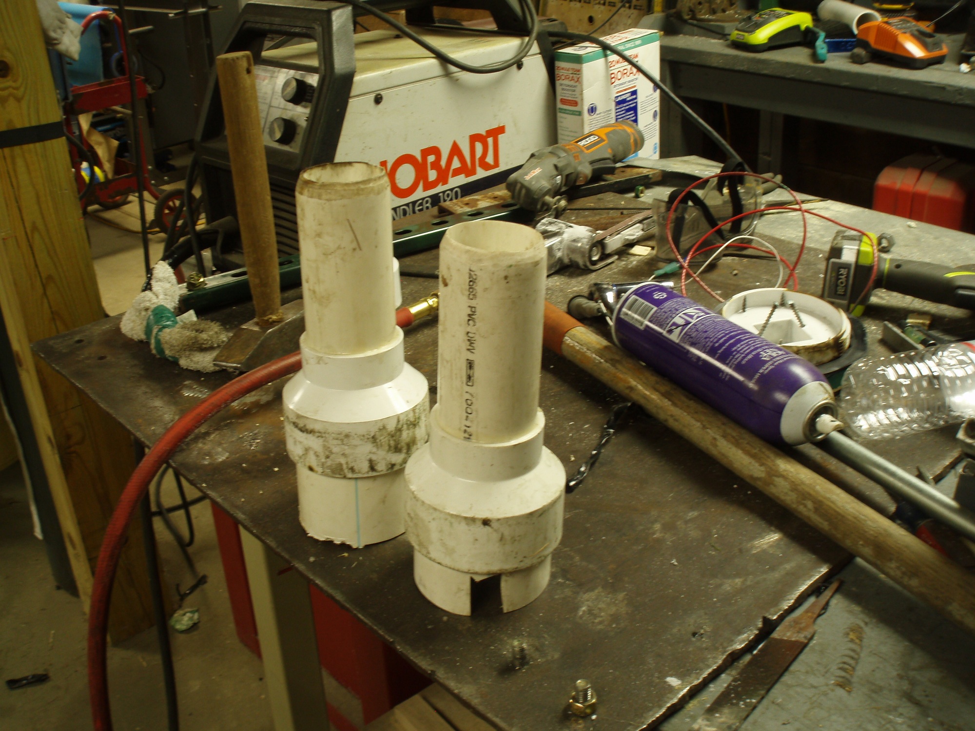 I got some new parts and made my shell-holding chamber into just a chamber. I cut the ends off my shells and made them into mini-shells that just hold a potato. They've got a cable going down the middle so I can push them up the chamber and extract them with the sacred shell retrieval staff (pipe with a hook). The back door has an interrupted thread and four handmade rubber gaskets. I certainly had some issues getting a good seal to start with, but I eventually got it to stop leaking.