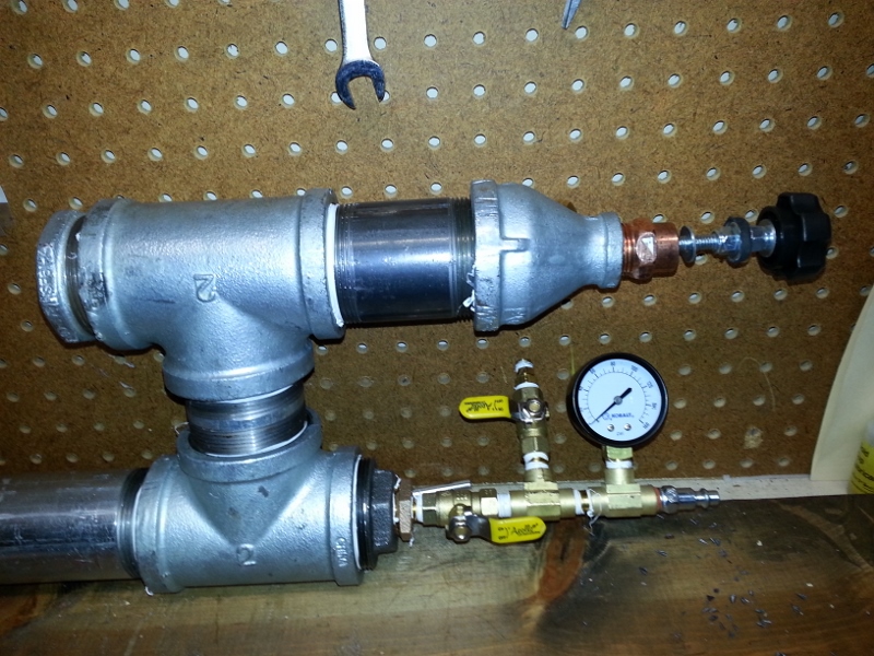 I went up to 100PSI. It started leaking at 65PSI. I used Ultra black gasket sealant to seal all the piston components. The sealing face has a void in it that I filled with the sealant. Since it still wasn't cured after 48 hrs, the higher pressure caused it to ooze past the nut and washer holding the sealing face on. It has since been upgraded with a larger diameter washer and allowed ample time to cure. Might do a low pressure test this weekend. All I have in Texas is a bicycle pump. I know, what kind of spudder does not have an air compressor.
