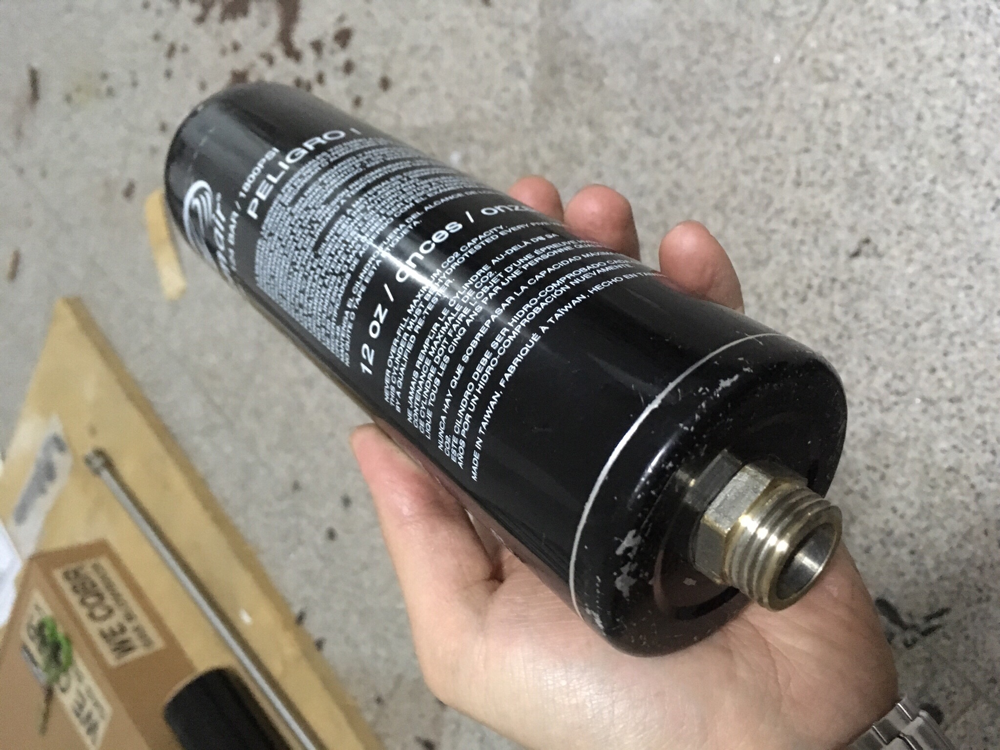 I had this co2 bottle for quite a while and it seemed like a good chamber for 10x hybrid. However the threading isn't very user friendly and small so I drilled and tapped the button with 1/2 BSP and epoxied a modified 1/2 union. Is this a bad idea? The thickness of the button allowed about 10mm of thread.