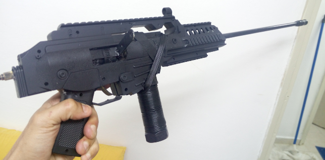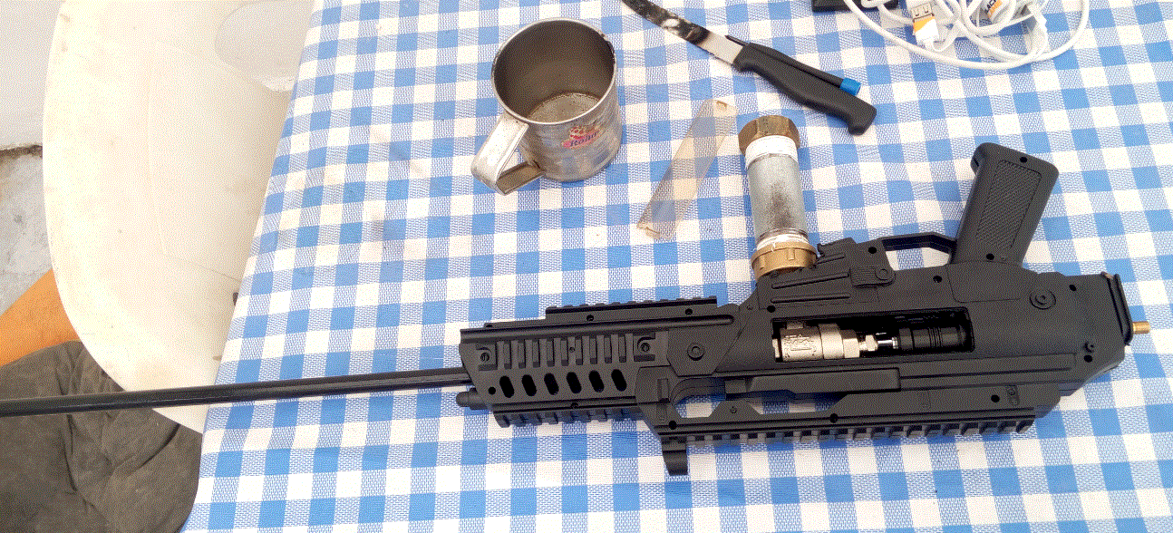 I removed the insides and cut some of the plastic, after putting everthing in, i used some expanding foam to fill the empty spaces & make everything stay in place. I drilled a 10mm hole in the barrel (right next to the QEV) and used a tube with a handle to seal it, attached a trigger and a reloading handle to the slide valve, and that's it. it's pretty light and surprisingly easy to aim, shoot & reload. I can't find the detachable stock though