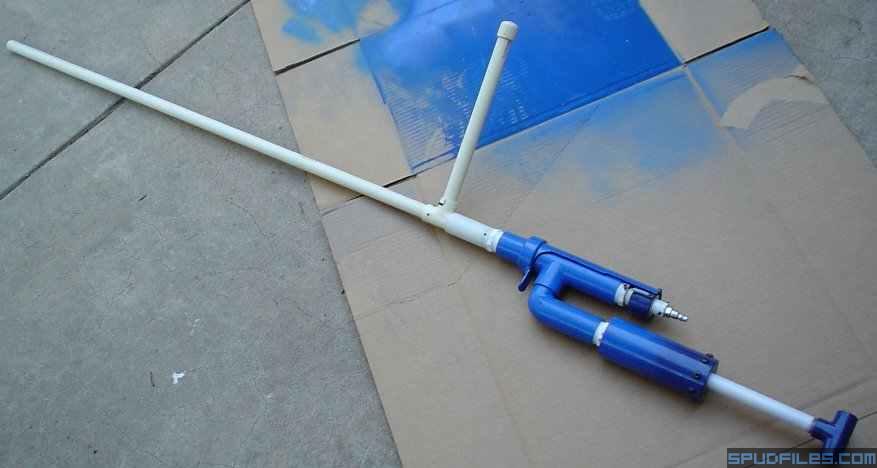 Sorry, no exact plans. It would take a lot of time and be very difficult for anyone to do without a lathe, but if you have specific questions I can help you out. As for the parts it is pretty much all off the shelf pvc (some modified) except for some PVC rod, a couple springs, some screws, and various rubber sealing parts. Edit, and yes where the extendable stock comes out is the chamber. If I forget to extend it before pressurizing the gun it will kindly remind me by slamming into my gut.