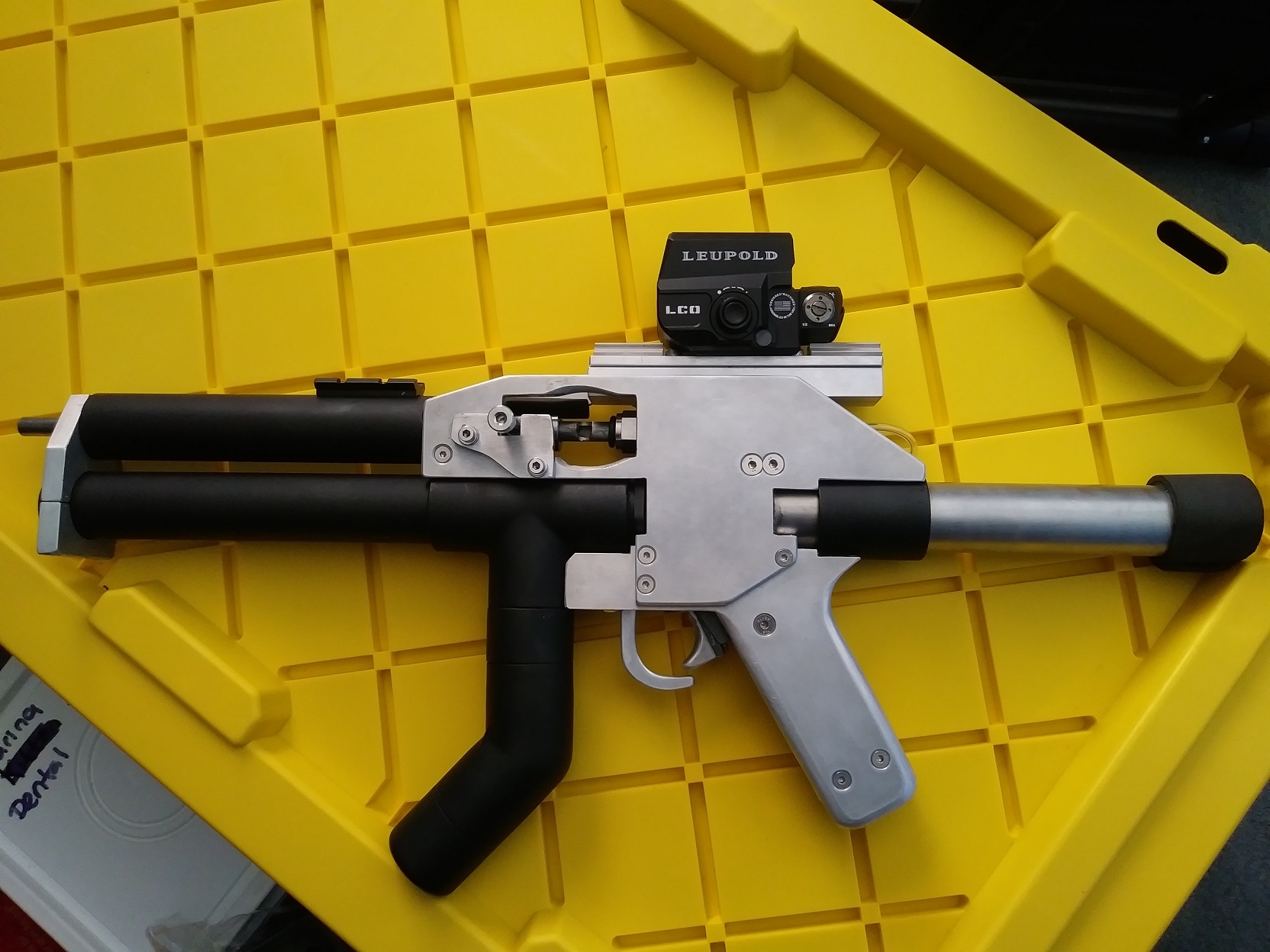 Going to make a 4.5mm BB gun, not sure if it will end up being select fire or full auto. Using wood for the first time, the body will be 2 pieces of 3/4 plywood joined together, magazine will be spiraled around the chamber and be air fed from air bleed off the barrel. Should hold at least 200 bbs.