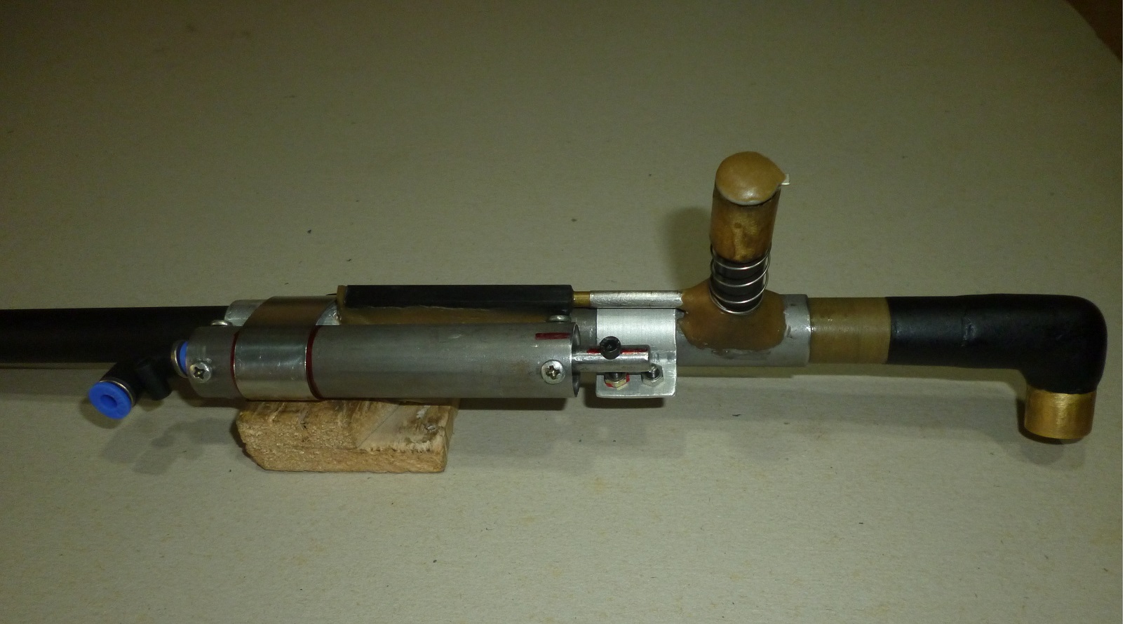 I just need to integrate the pneumatic actuator of simple effect, to achieve the automatic movement of the slide, (in gray in the design).