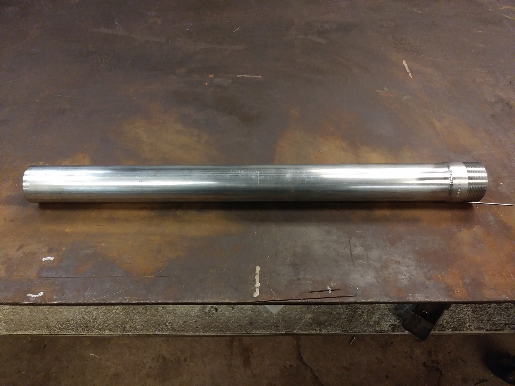 Making a slush delivery pipe at work from 2" NPT threaded weld on nipple and 2' of 2 1/4" thin wall tubing, it was just talking to me saying 'I'm a spud gun barrel, what can you fit in me'