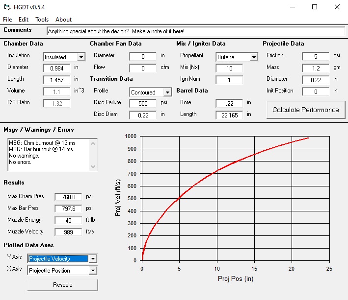 I am including a couple of simulations made by Jack, on this weapon. In one case, the combustion chamber works with 180 cm3 of air and in the other, with 150 cm3 of air.