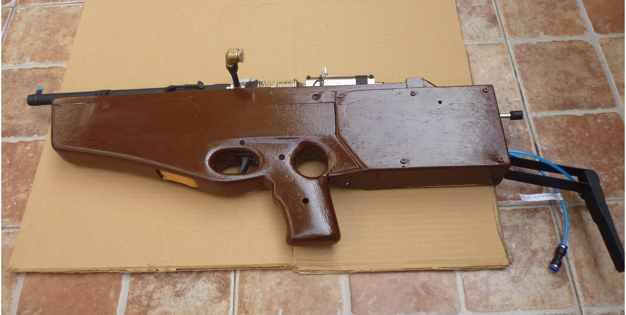 I leave a pictures of the experiment weapon. The woods are dear to me, because they are the first autonomous hybrid I built. It is still useful for me to test the designs. :)