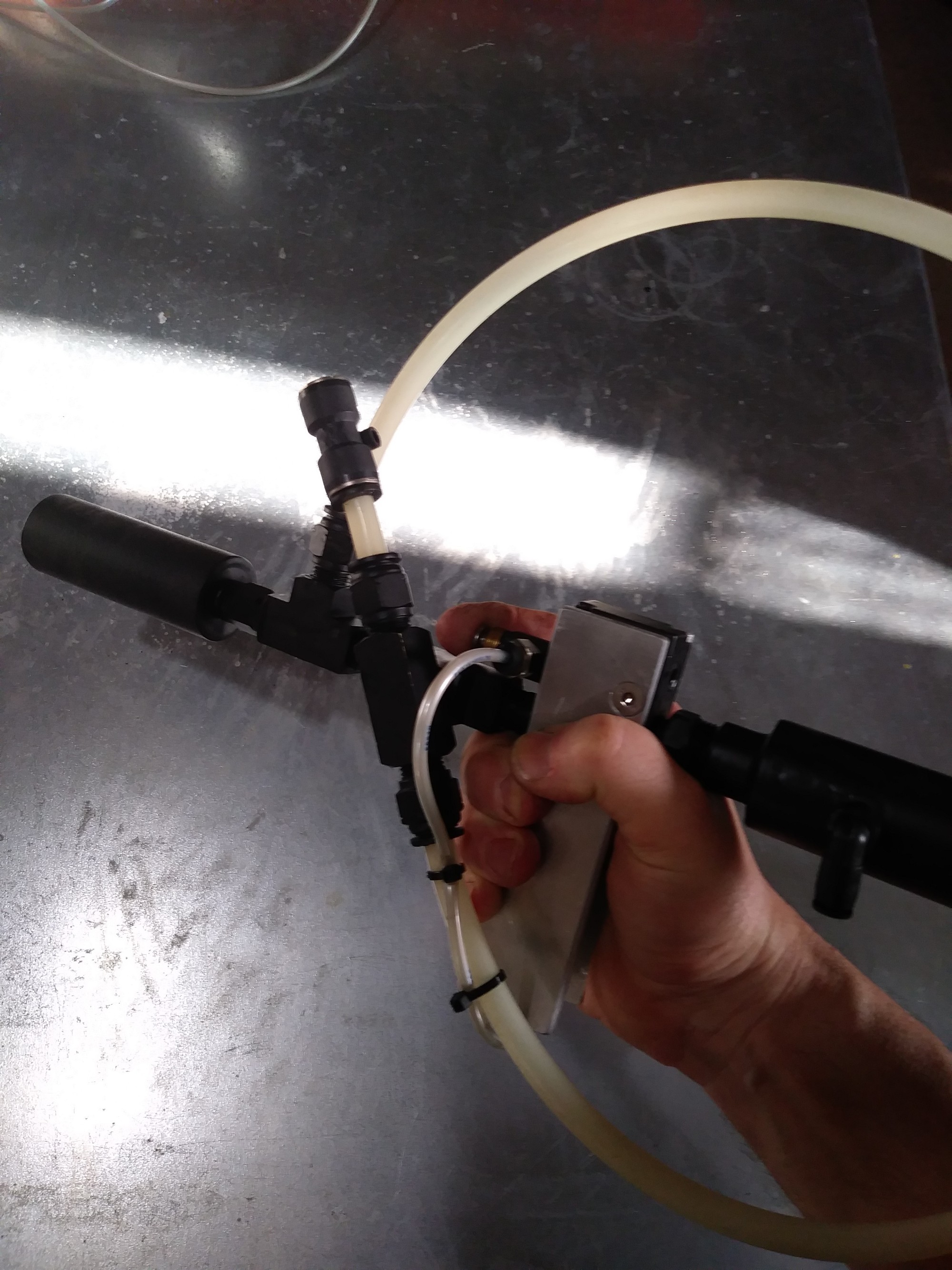 I sort of made a full auto pistol from pieces I screwed together, the chamber is the only piece fabricated. Holds 130 bbs, rate of fire is insane, can get 4 bursts if I'm quick on the trigger. Compressor connects to the small fitting on the chamber at 150psi. The valve is a 5/2 1/8"' port pilot operated, the trigger is screwed into the valve and takes air from the normally open port. Want to try a T fitting on the magazine tube to make filling easier.