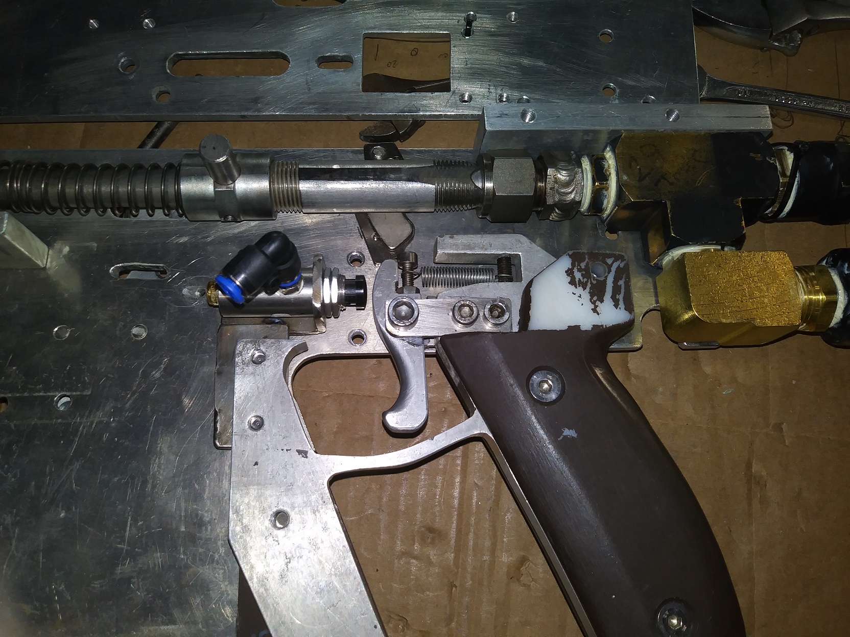 Stripped the old BFG, fitted my homemade QEV as the main valve, and a new Normally Open trigger valve, first test shots are very impressive.