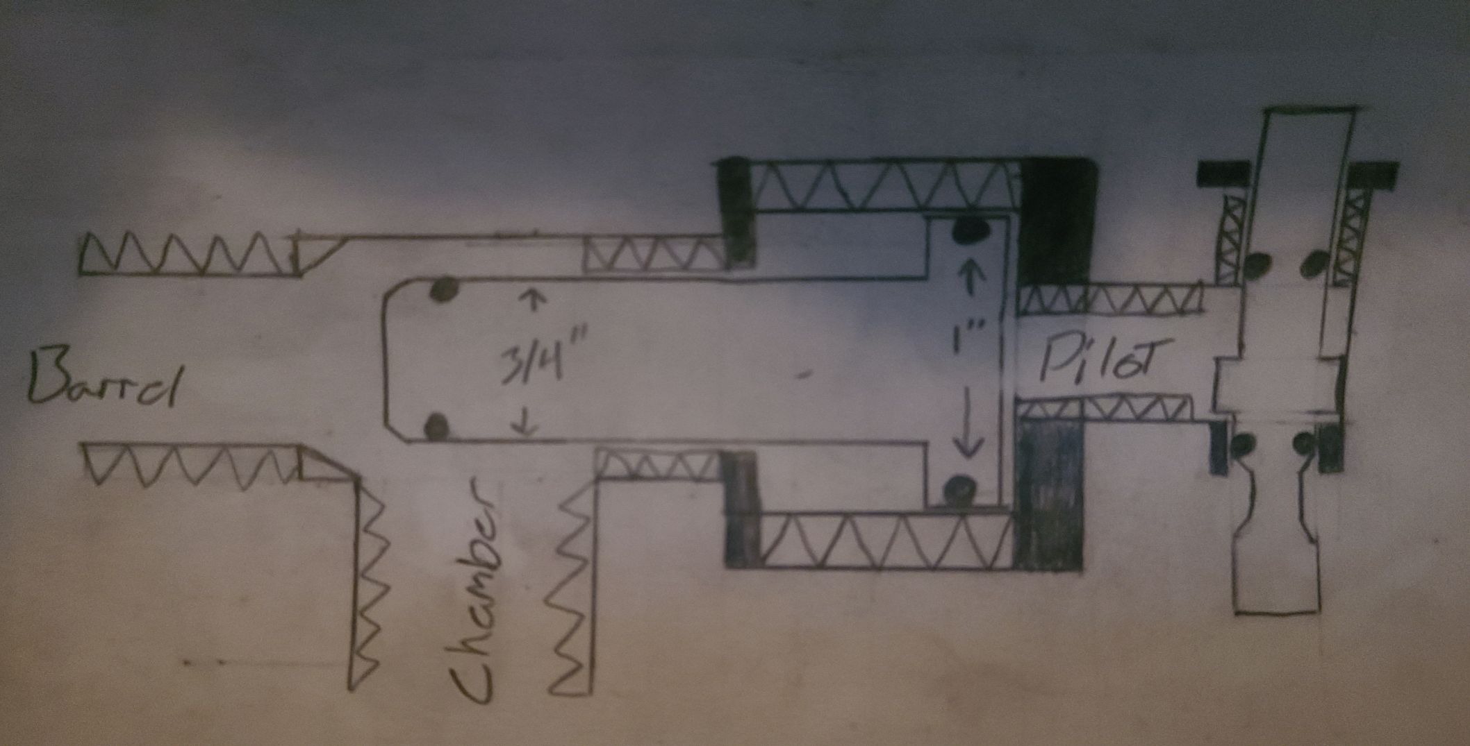 I built a valve like the one you use, but very small, it is for a future hybrid short gun. It works wonders and I no longer have the problem of burning the front seal, nor doing it, nor aligning it absolutely perpendicular to the barrel so that it seals. The smaller diameter is only 6.35mm and the larger piston is 8mm. I only bought about 50 6mm o'rings, which are what I used in the part that seals the combustion chamber. Add a system so that the pilot is open after the shot, because I need air to be able to come out of the barrel to clean the chamber immediately after the shot. It has a stem to close it before pressurizing with butane and air. When I can, I'll leave some photos here.