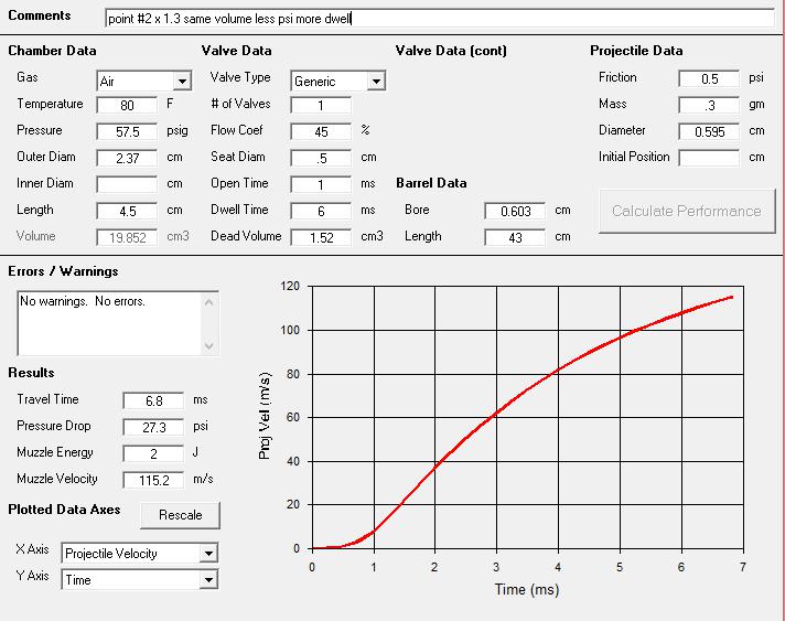 #2 As an example, you can drop the dwell on an adjustable volume system to "under volume" the barrel at 80psi and thus reduce velocity. However, if you were to increase the pressure but not change the dwell, your velocity will increase due to the higher volume of air being released within that dwell since it is at a higher pressure. The same volume of air is being used, just at higher pressure the air expands in the barrel to fill it and propel the BB verses a slow flow of lower pressure air continuing to push the BB down the barrel.