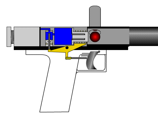 If I'm getting it right, the trigger simultaneously blocks the airflow from the main chamber and releases a blow-forward valve that dumps the firing chamber?
