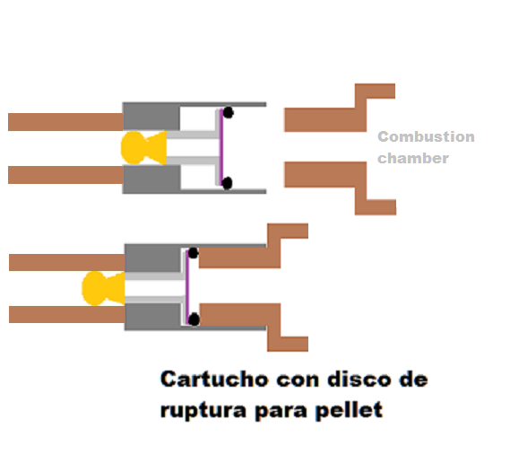 The pellets are attached to the 11 mm diameter rupture disc, so as not to have to load the pellet and then the rupture disc. It is two layers of thin aluminum foil.
