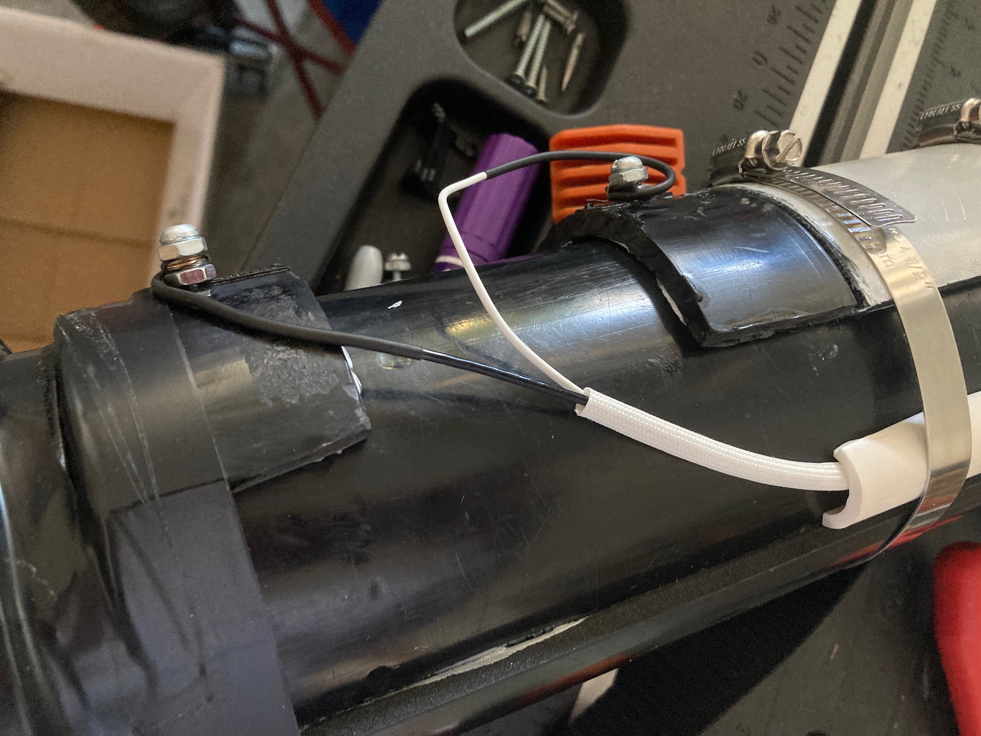 Few more stuff is new electros, went from 8-32 machine screws to 10-24 ones, new 18 gauge wires taken from a broken washroom mirror light, extra cut coupling solvent welded onto it to make it more sturdy, and make it... look less flimsy, no fan as of it yet, because I done goofed up and shorted it by getting too curious with batteries, lets just say; don't directly shoot 16 volts into a 12 volt computer fan with a drill battery :lol: