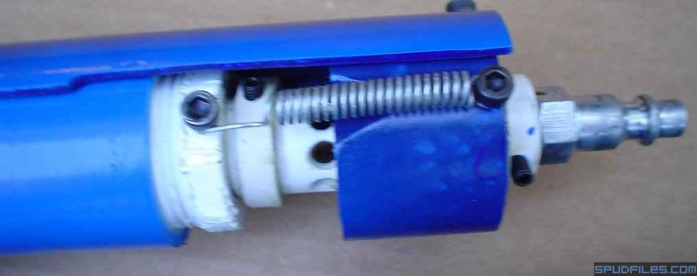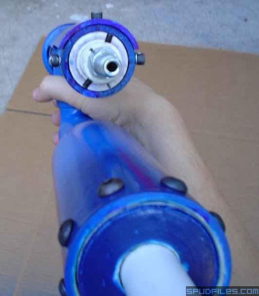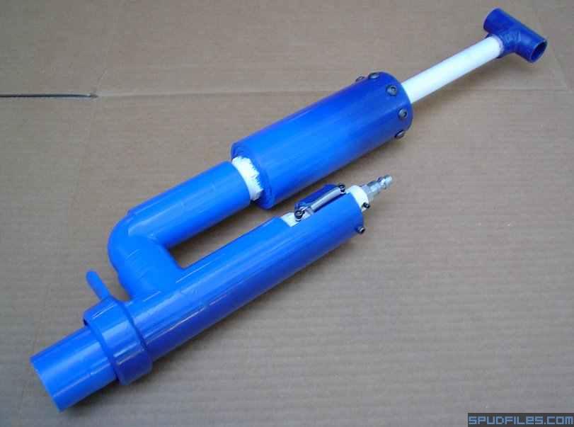 Sorry, no exact plans. It would take a lot of time and be very difficult for anyone to do without a lathe, but if you have specific questions I can help you out. As for the parts it is pretty much all off the shelf pvc (some modified) except for some PVC rod, a couple springs, some screws, and various rubber sealing parts. Edit, and yes where the extendable stock comes out is the chamber. If I forget to extend it before pressurizing the gun it will kindly remind me by slamming into my gut.