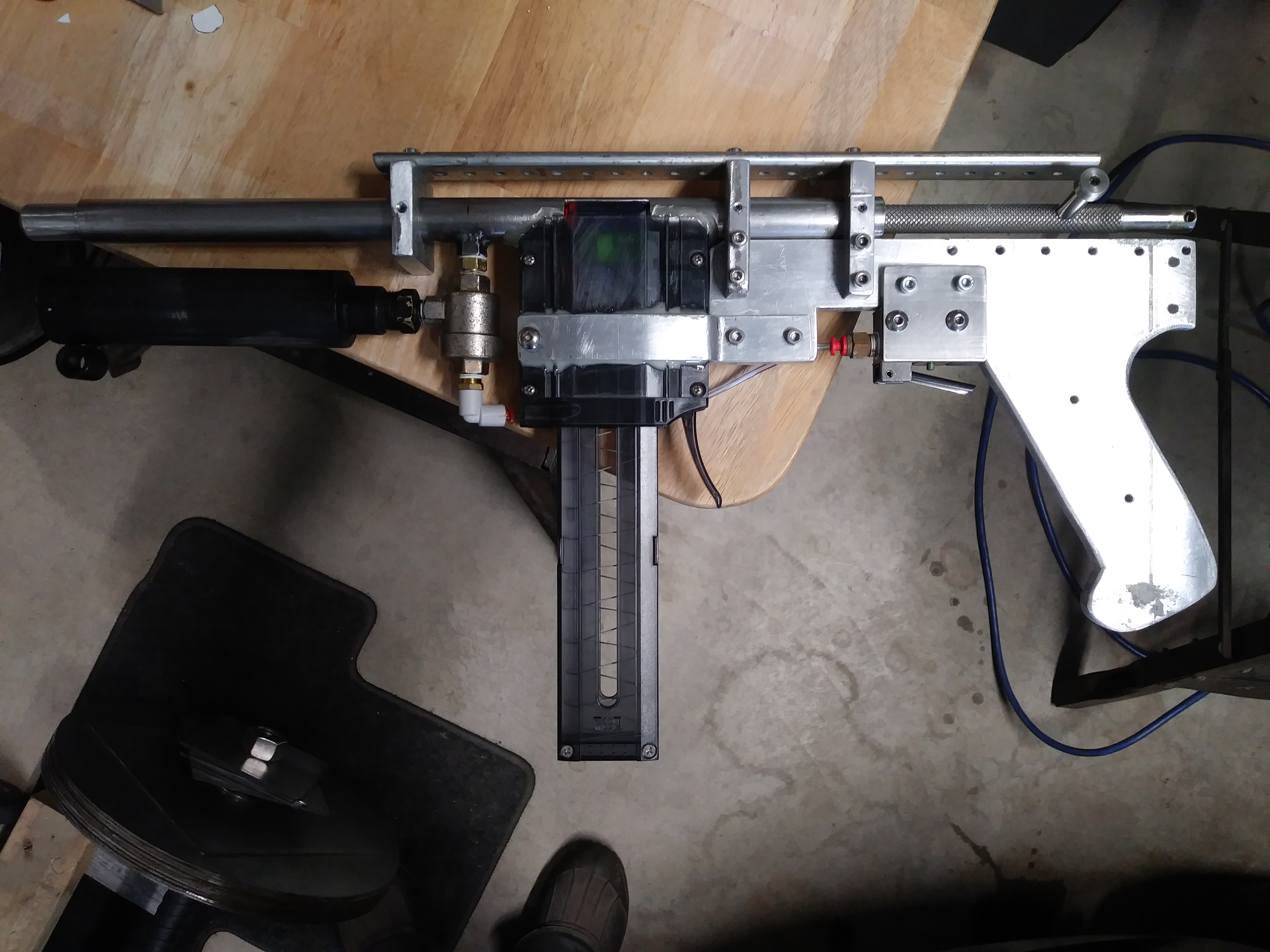 Using a magazine and adapter from one of my Nerf guns I have made a bolt action magazine fed launcher, just needs painting and trigger guard making, 150psi gives over 300fps with half length darts.