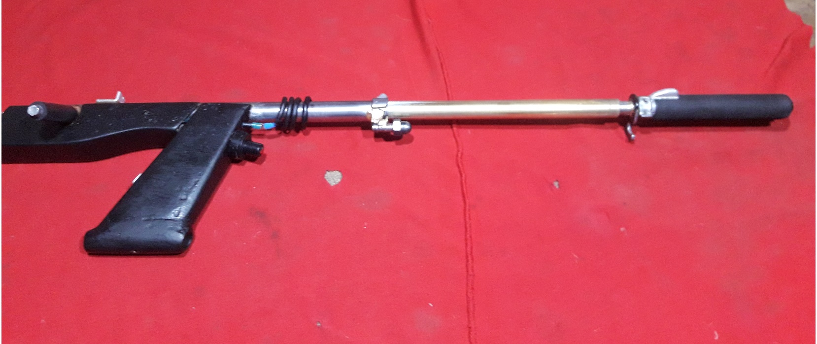 The pre-compression that could be achieved is much more than just using the strength of the arms... Logically, it is for a long gun, more powerful than this pistol I made, but just as simple to operate when shooting. It was just an idea.