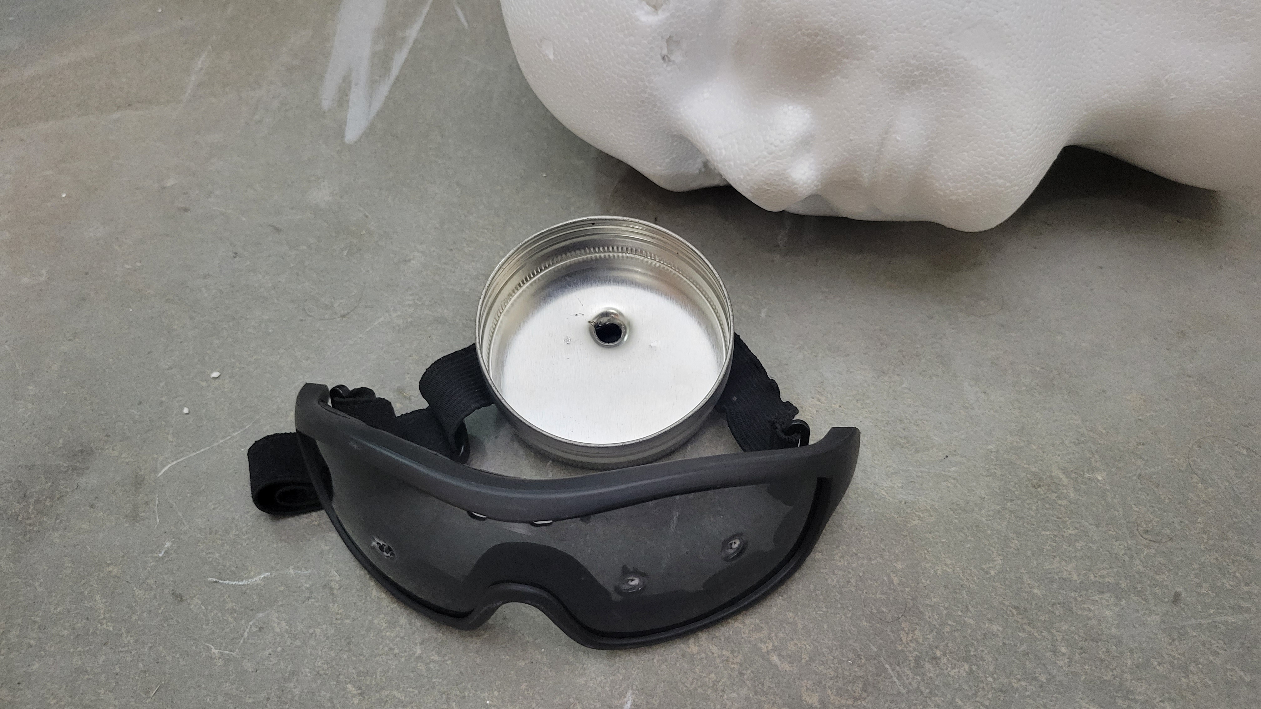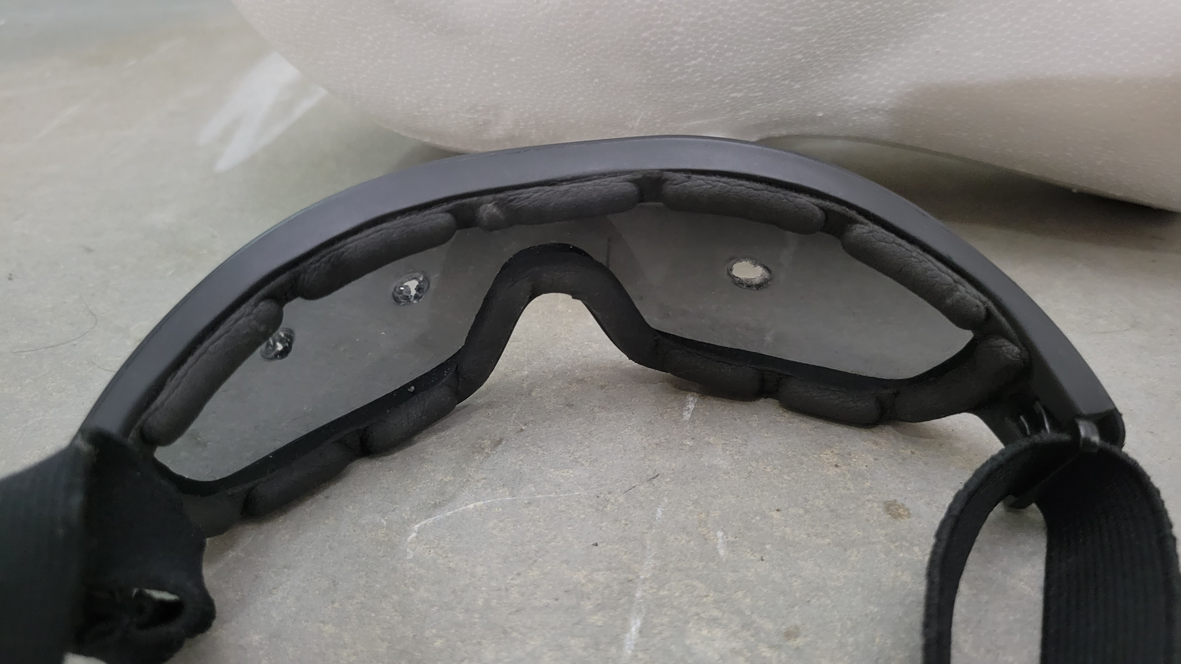 Biodegradable BBs are fragile but at these speeds the penetration is impressive, right through the goggles and the polystyrene head and into the backstop behind it. I added a pellet tin and it still blew through as if it wasn't there: